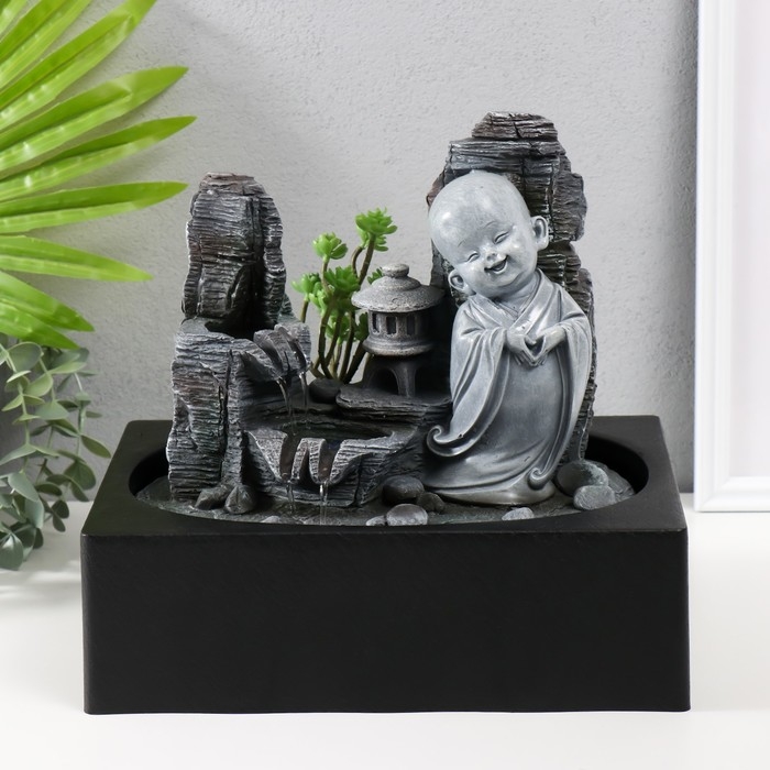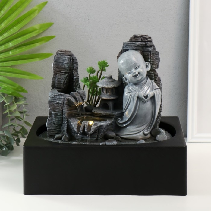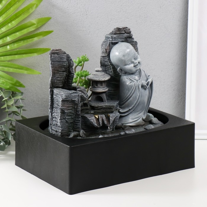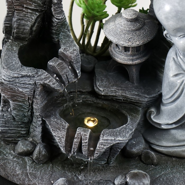 Фонтан настольный от сети, подсветка "Маленький хотей в каменном городе" 29х21х27 см