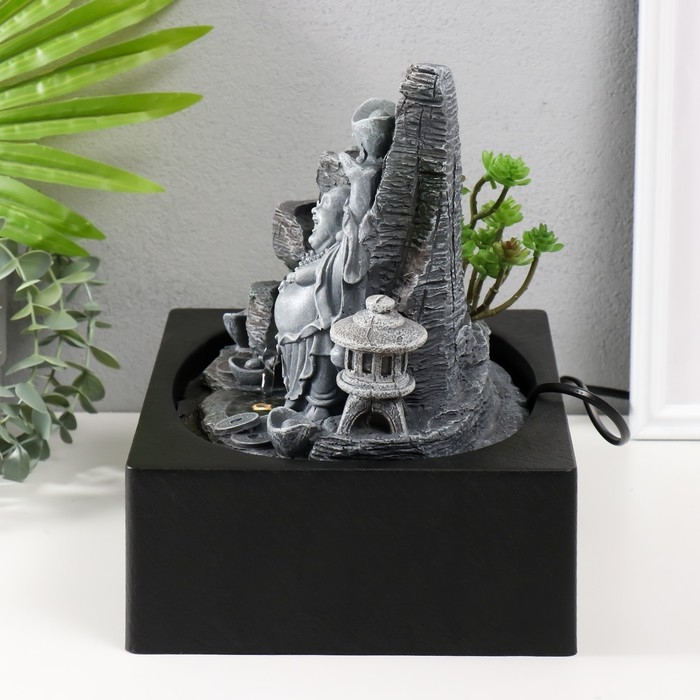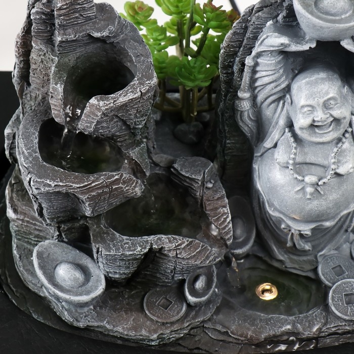 Фонтан настольный от сети, подсветка "Хотей со слитком в каменном городе" 29х21х26 см