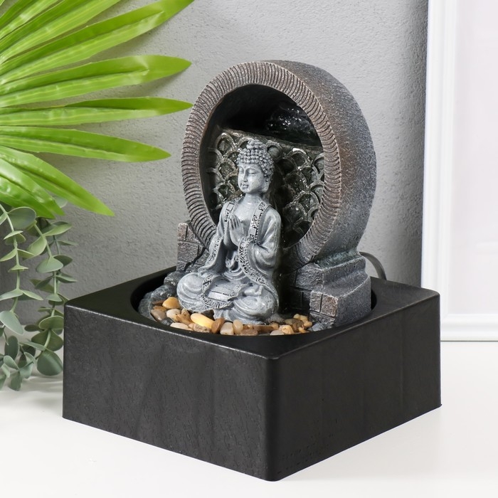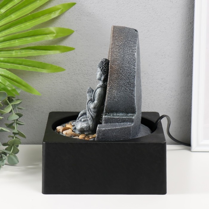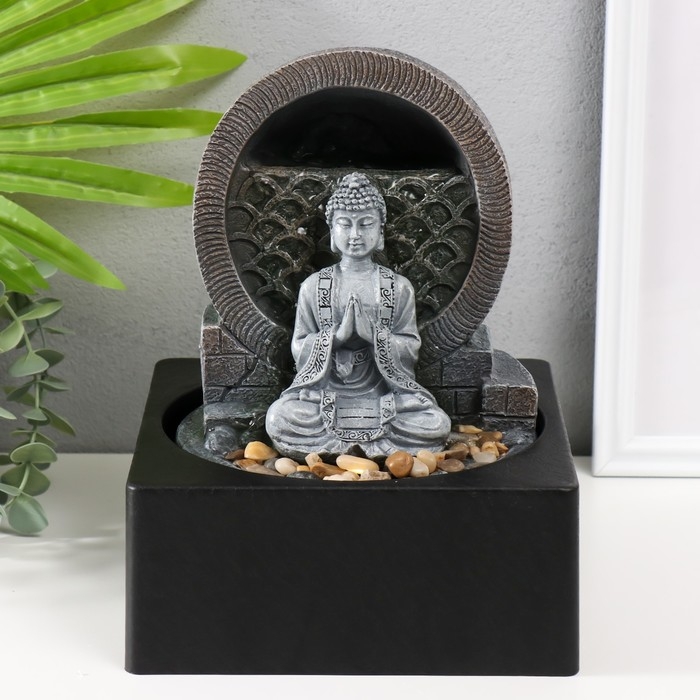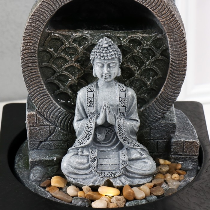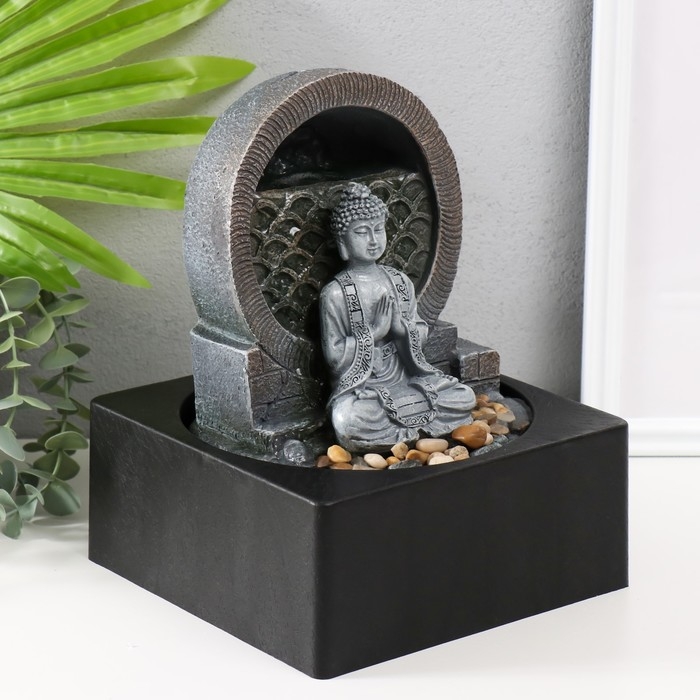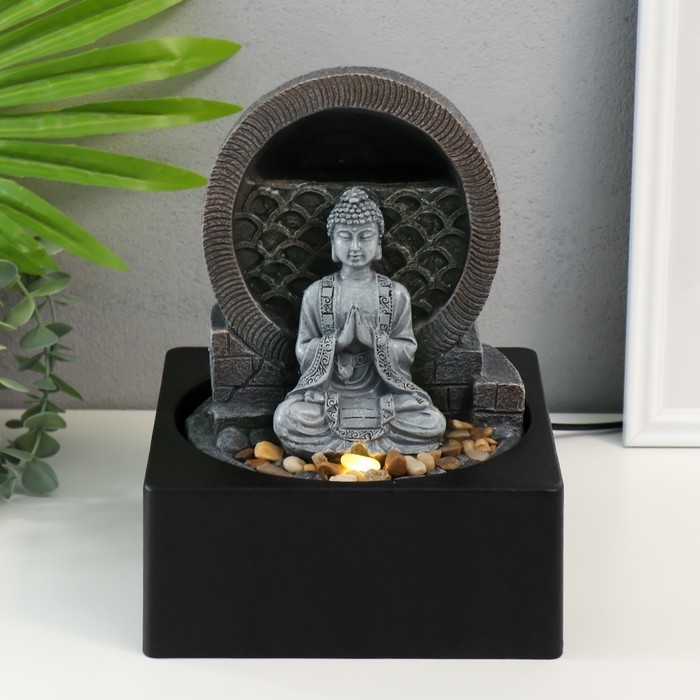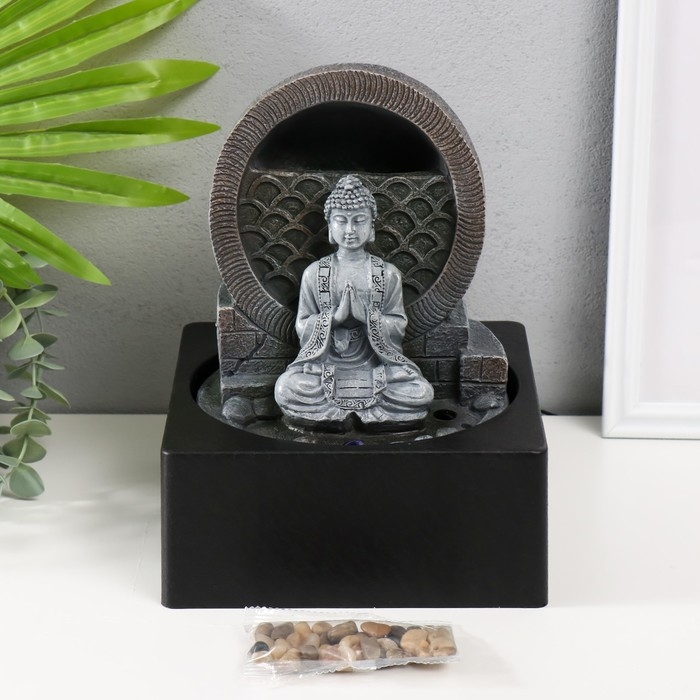 Фонтан настольный от сети, подсветка "Медитирующий Будда" серый 18х18х24 см