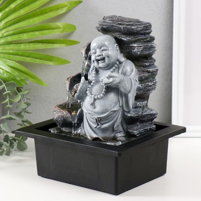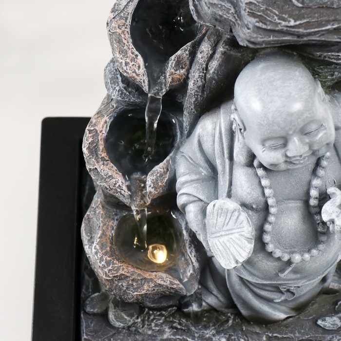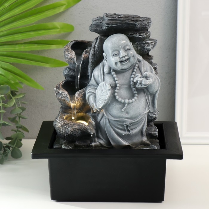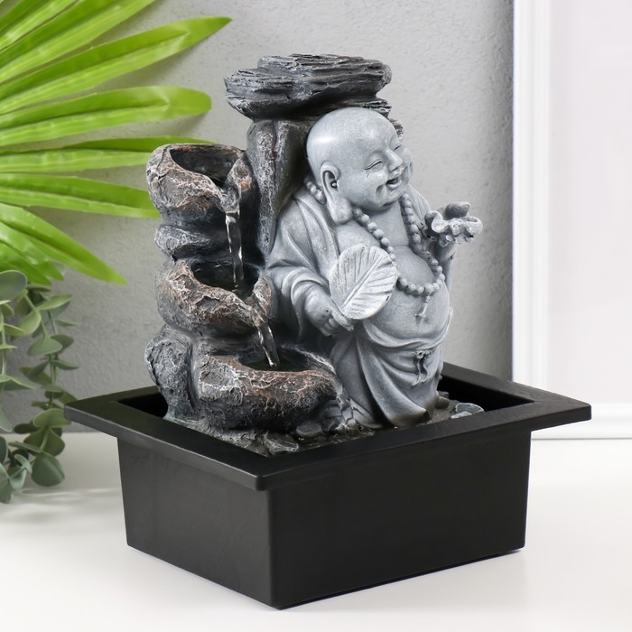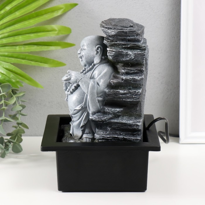 Фонтан настольный от сети, подсветка "Серый хотей с опахалом" 21х17,5х25 см