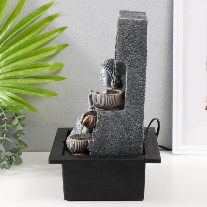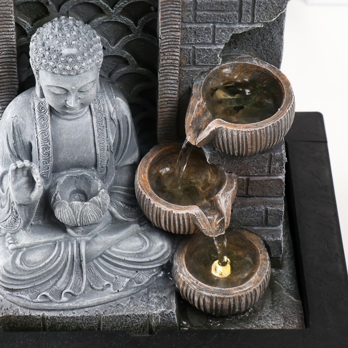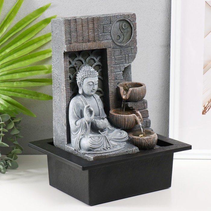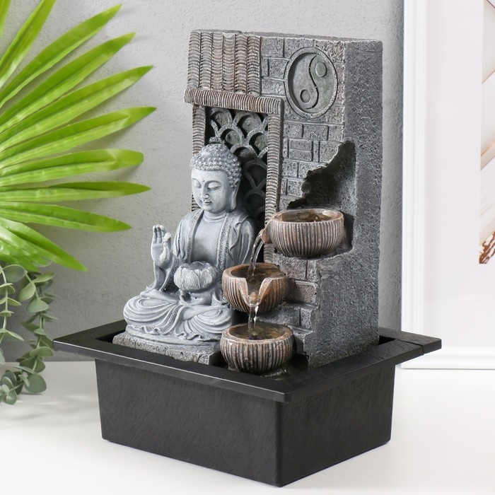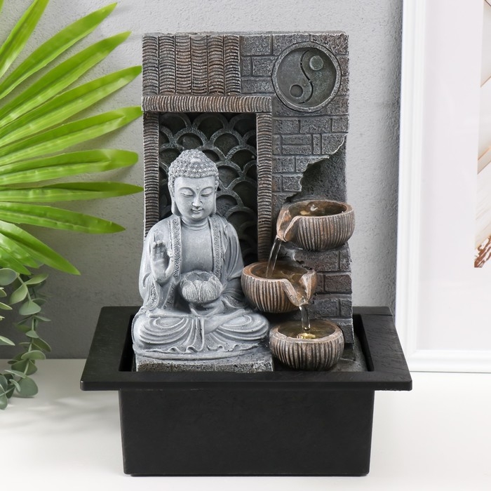 Фонтан настольный от сети, подсветка "Будда с лотосом. Инь-ян" 25х20х32 см