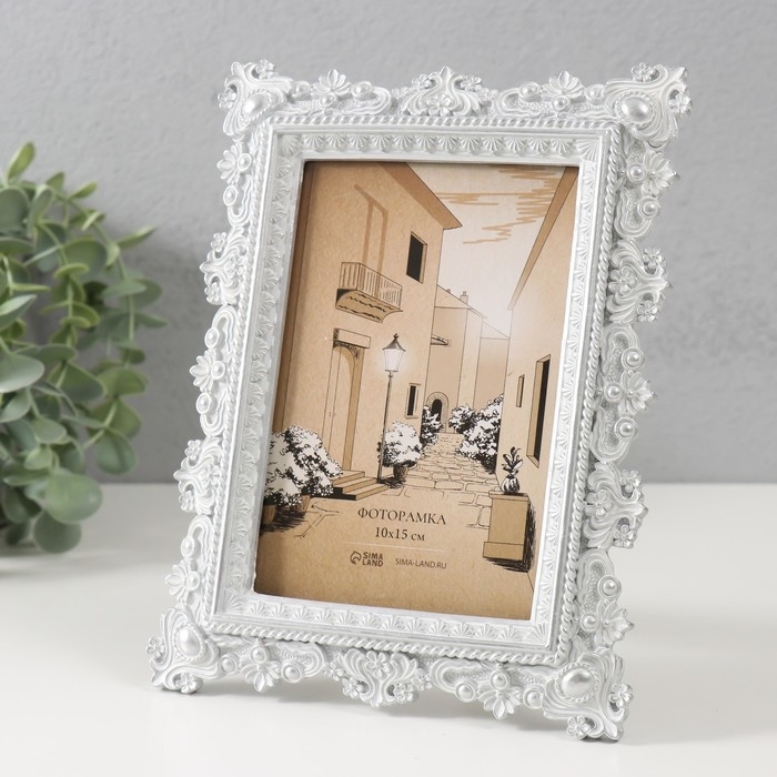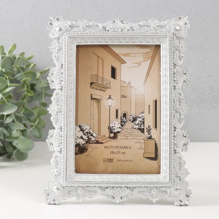 Фоторамка полистоун 10х15 см "Амфитея" белая с перламутром 15,3х1,8х21 см