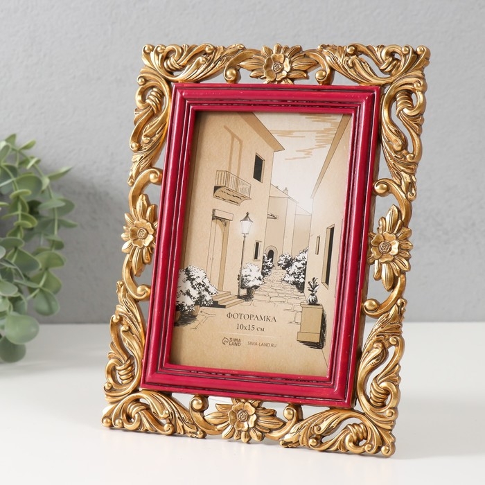 Фоторамка полистоун 10х15 см "Антея" красная с золотом 17,3х1,5х22,2 см