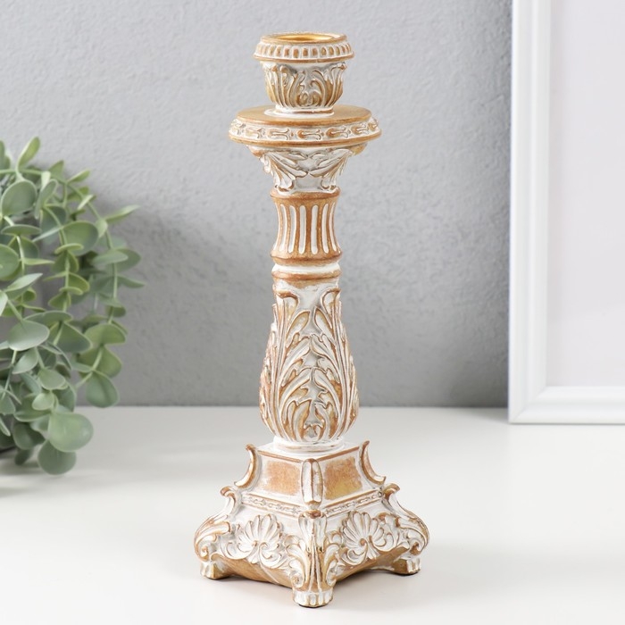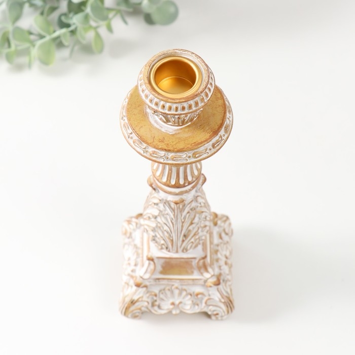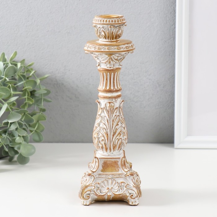 Подсвечник полистоун на 1 свечу "Амфитея" песочная с патиной 7,8х7,8х23,5 см
