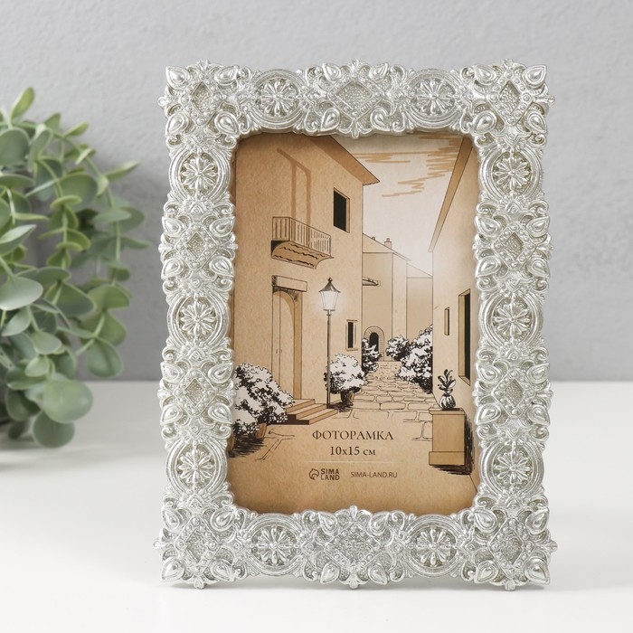Фоторамка полистоун 10х15 см "Герцогиня" серебро 14,7х1,8х19,5 см