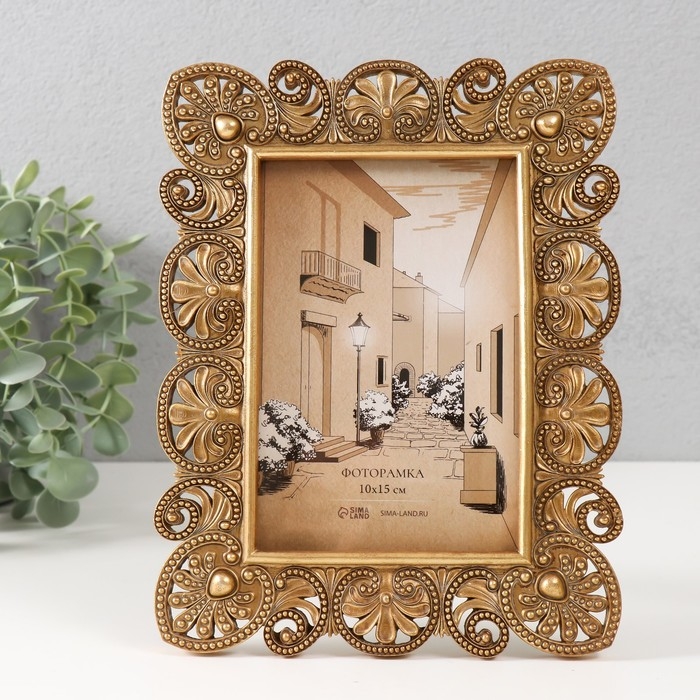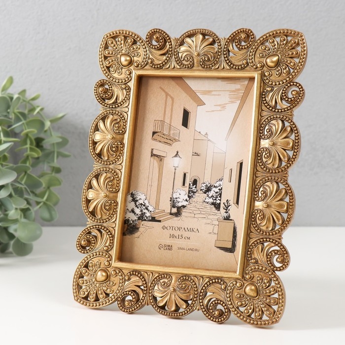 Фоторамка полистоун 10х15 см "Цветок-веер" золото 16,8х1,8х21,5 см