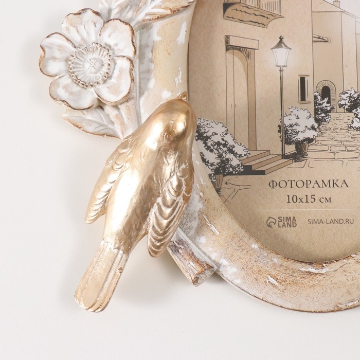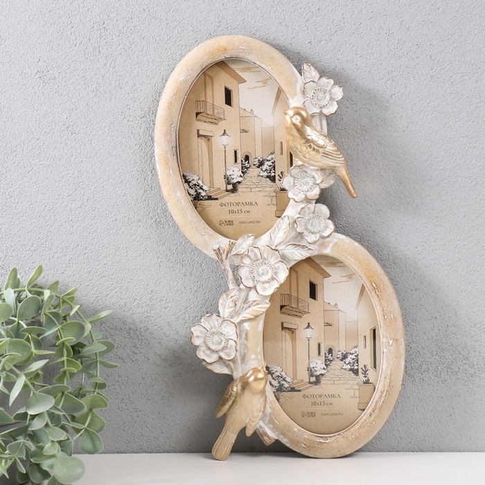 Фоторамка полистоун на 2 фото 10х15 см "Птицы и цветочная ветвь" белая 20,5х24 см