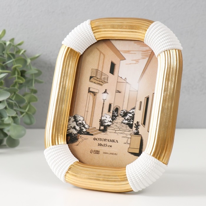 Фоторамка полистоун 10х15 см "Фабиан" золотая с белым 14,9х2,4х19,8 см