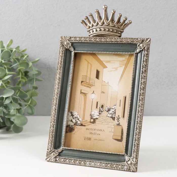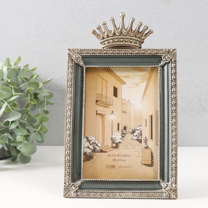 Фоторамка полистоун 10х15 см "Корона" серо-синий 13,7х2,8х23,2 см
