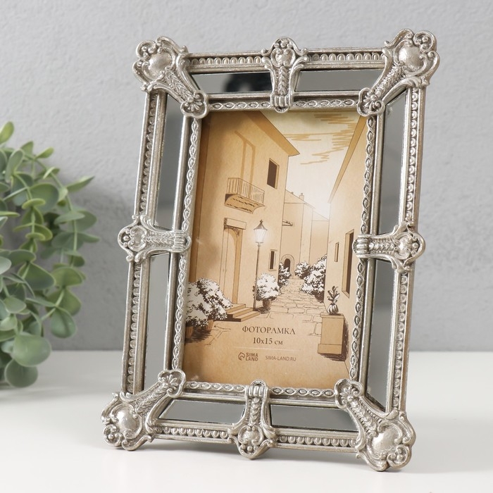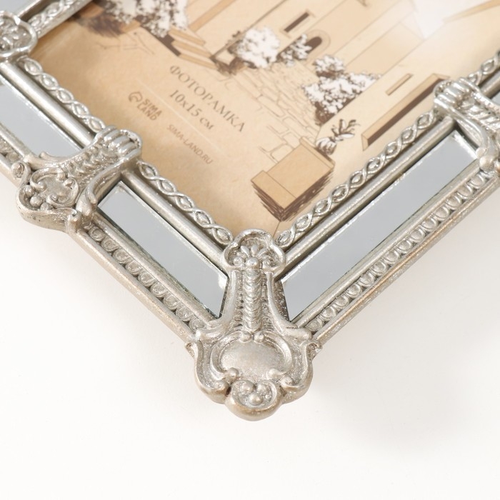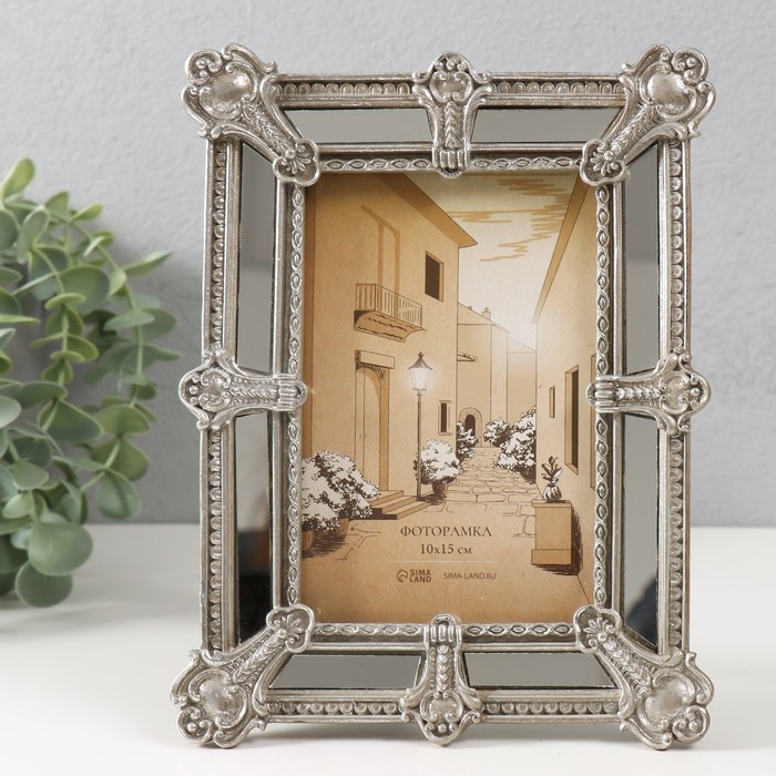 Фоторамка полистоун 10х15 см "Ампир" серебро с зеркалом 16,5х2,3х21,6 см