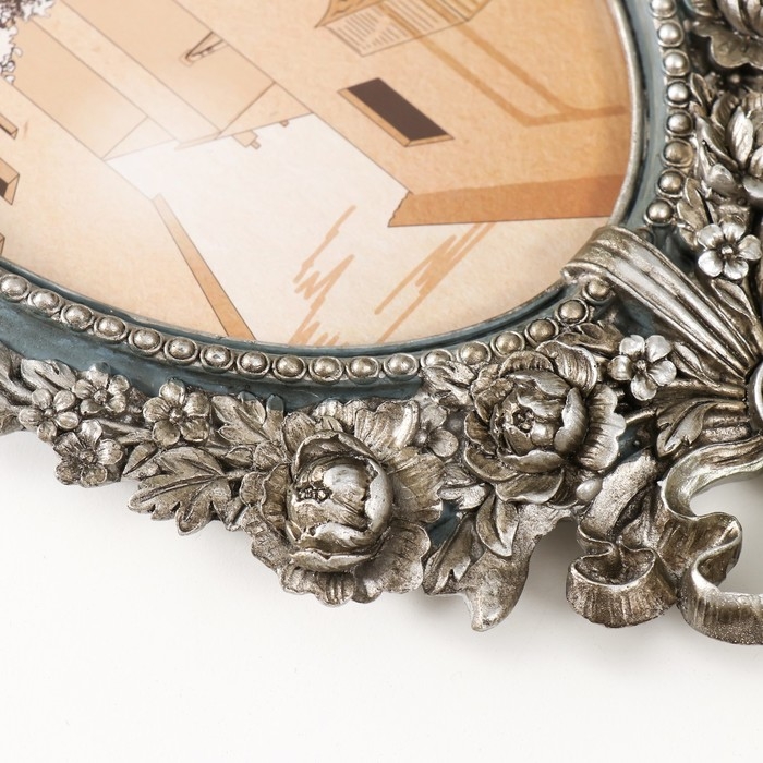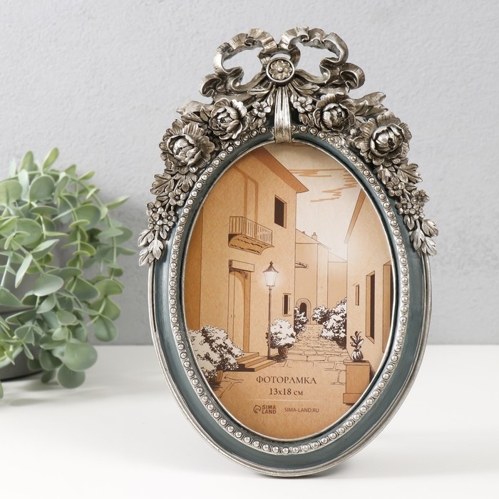 Фоторамка полистоун 13х18 см "Бант и цветочный венок" тёмно-серый серебро 16,8х1,7х25,5 см
