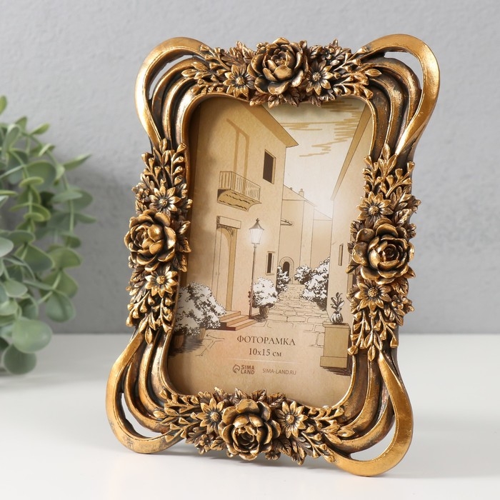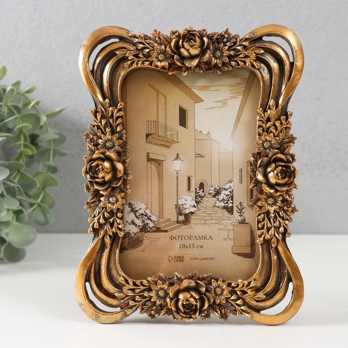 Фоторамка полистоун 10х15 см "Королевские розы в букете" тёмное золото 15х2х20 см