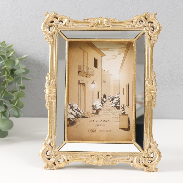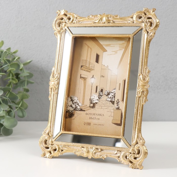 Фоторамка полистоун 10х15 см "Вереск" золото с зеркалом 17,1х2х22,3 см