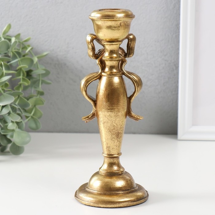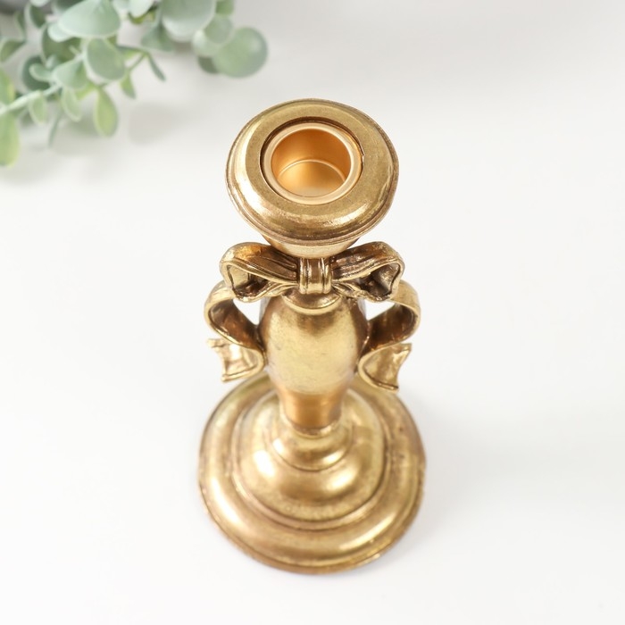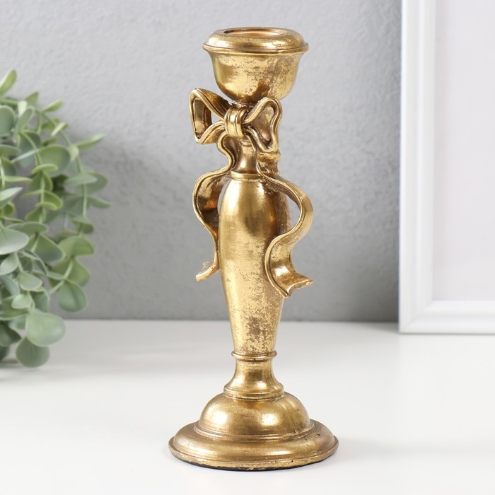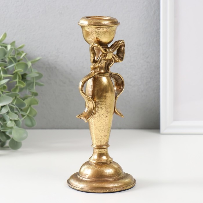 Подсвечник полистоун на 1 свечу "Бант" золото 8,3х8,3х20,8 см