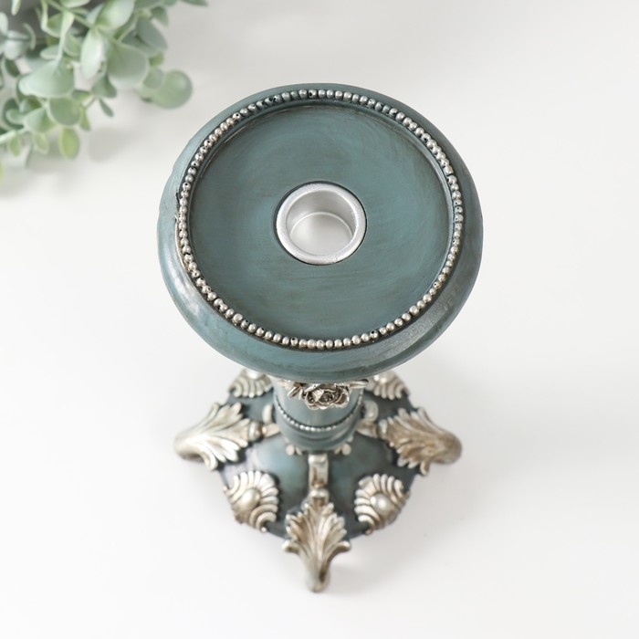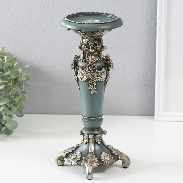 Подсвечник полистоун на 1 свечу "Цветочная элегия" тёмно-серый серебро 10,5х10,5х27 см