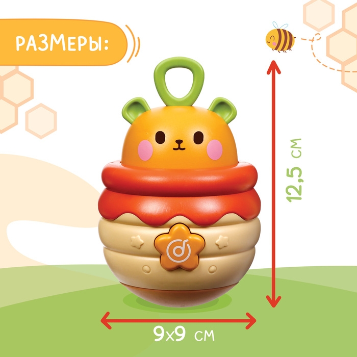 Музыкальная неваляшка в виде милого мишки разработана для малышей от 1 года. Зверёк привлечёт внимание трогательным дизайном и надолго займёт малыша. Игрушка не только развлечёт ребёнка — с ней кроха потренирует слуховое восприятие, зрительно-моторную координацию и воображение.