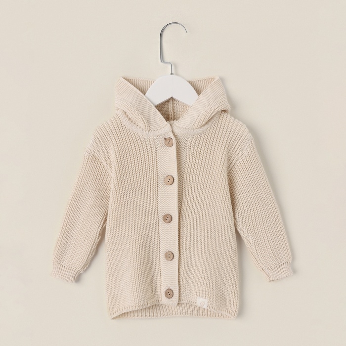 Кардиган вязаный с капюшоном SL Home, р.74-80 см, молочный