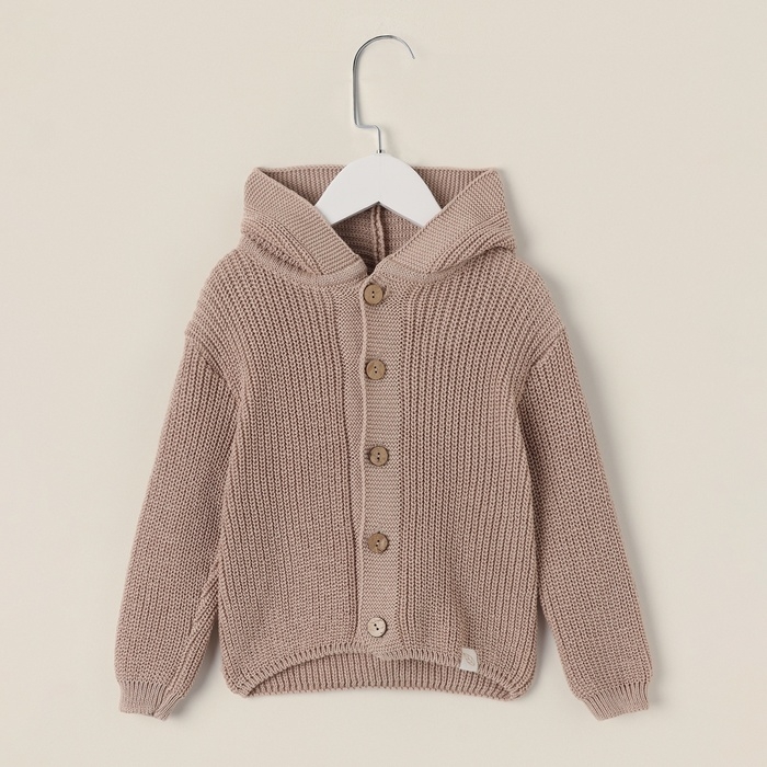 Кардиган вязаный с капюшоном SL Home, р.68-74 см, песочный