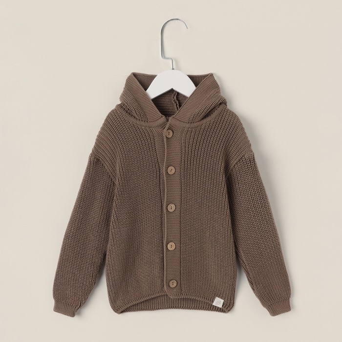 Кардиган вязаный с капюшоном SL Home, р.80-86 см, кофейный