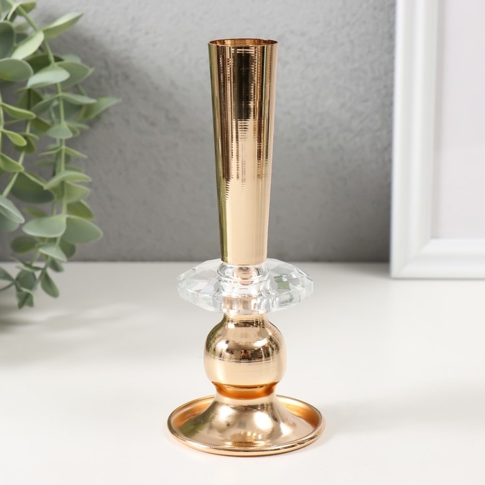 Подсвечник металл, акрил на 1 свечу "Эллея" d=2,5 см золото 6х6х15 см