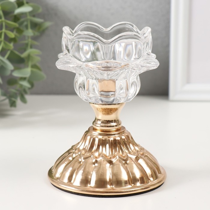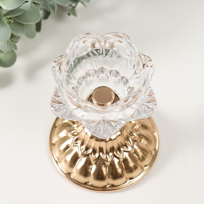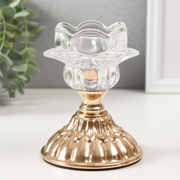 Подсвечник металл, стекло на 1 свечу "Ледяной цветок" d=5 см золото 8х8х12 см