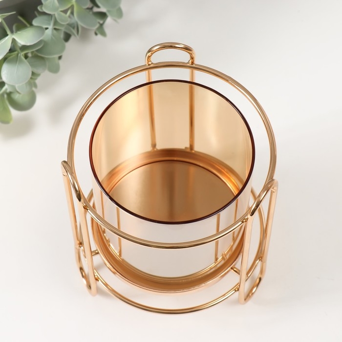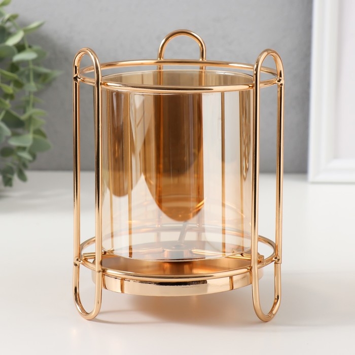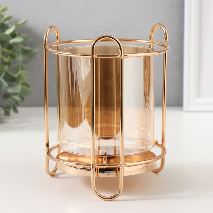 Подсвечник металл, стекло на 1 свечу "Колба в оправе" d=10 см золото 12х12х16 см