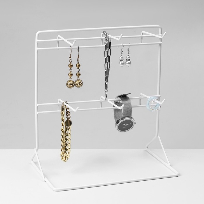 Подставка для украшений «Стойка настольная», 6 крючков 9 см, 25×15×26,5 см, цвет белый