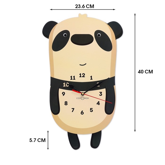 Часы настенные детские "Панда", бесшумные, с маятником, 23х40 см, АА