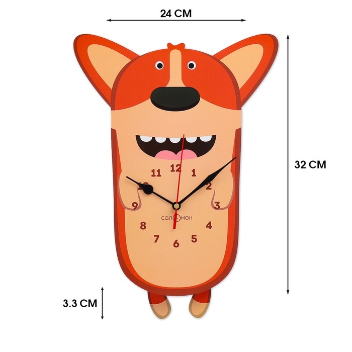 Часы настенные детские "Корги", бесшумные, с маятником, 24х32 см, АА
