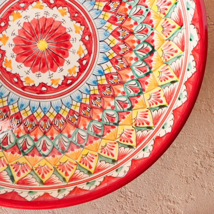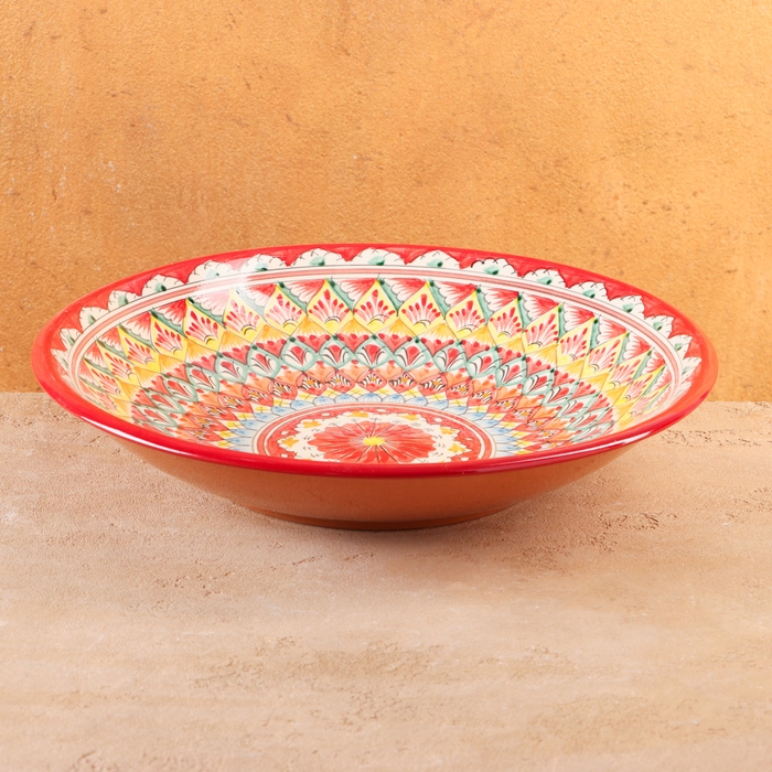 Ляган Риштанская Керамика "Цветы", 33 см, красный