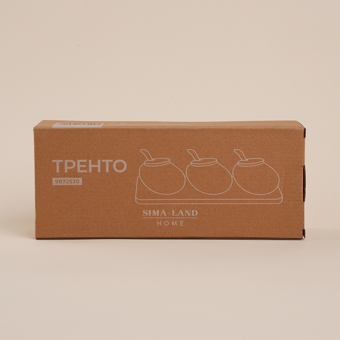 Набор банок фарфоровых с ложкой для сыпучих продуктов на подставке SL Home «Тренто», 7 предметов: 3 банки 150 мл, подставка, 3 ложки