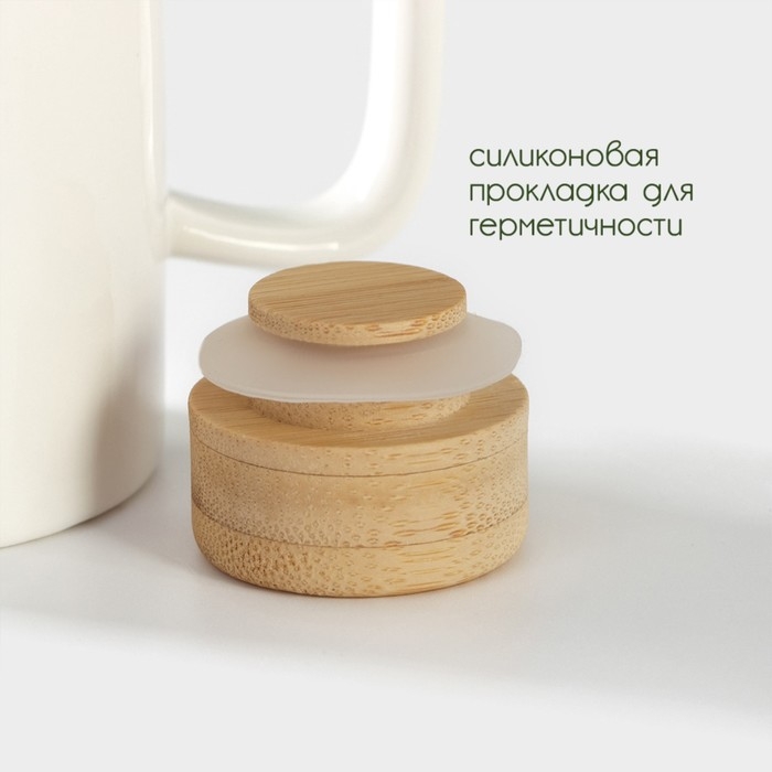 Ёмкости для соусов фарфоровые на подставке из бамбука BellaTenero, 3 предмета: 2 соусника 420 мл, подставка 17×7,2×17 см, цвет белый