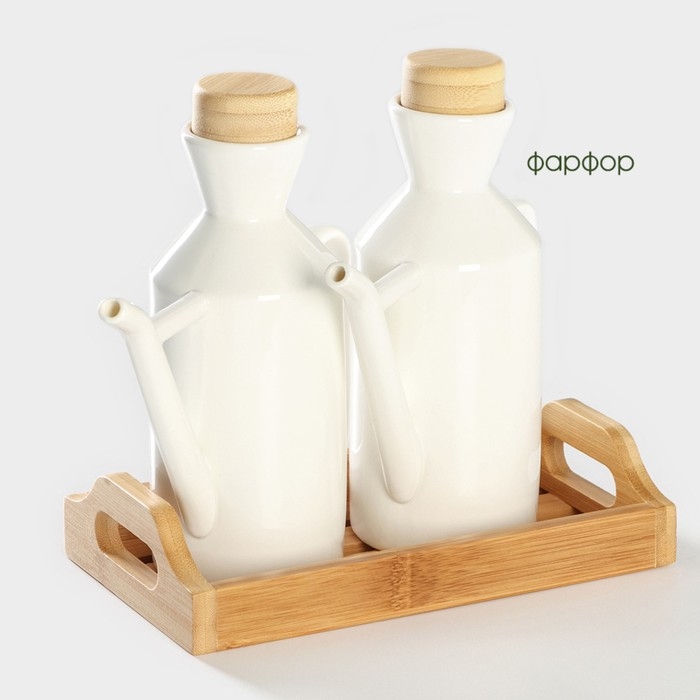 Фарфоровые ёмкости для соусов на подставке из бамбука BellaTenero. Эти стильные и функциональные ёмкости для соусов станут идеальным дополнением к вашей сервировке стола. Фарфор высокого качества гарантирует прочность и долговечность изделий, а элегантный дизайн будет радовать глаз. Соусники имеют объем 420 мл каждый и идеально подходят для подачи различных соусов и приправ. Подставка обеспечивает устойчивость и удобство при использовании. Благодаря компактным размерам и классическому дизайну, ёмкости для соусов BellaTenero впишутся в любой интерьер и станут отличным подарком для любителей красивой посуды. Фарфор можно мыть в посудомоечной машине для простоты ухода.