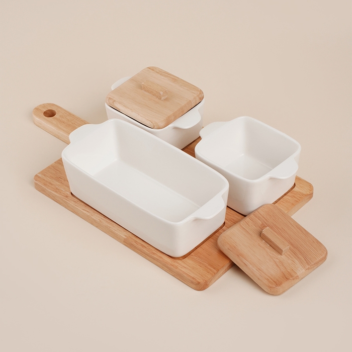 Элегантный набор для подачи блюд «Тренто» от SL Home представляет собой гармоничное сочетание стиля и функциональности. Включая три ёмкости из прочного белого фарфора объемом 500 мл и 250 мл, а также деревянную подставку, этот комплект станет идеальным дополнением к вашему столу, придавая ему утончённость и современный вид.
