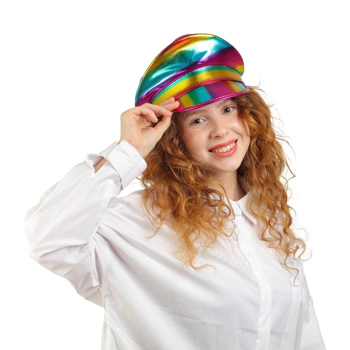 Карнавальная шляпа «Фуражка» радужная, с пайетками, р. 56–58
