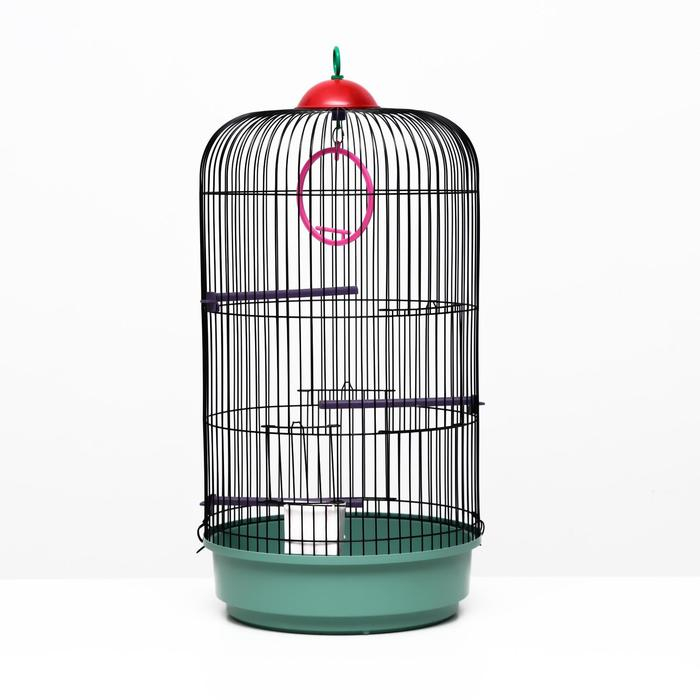 Клетка для птиц круглая, трехярусная сварная, малый поддон, 33 x 77 см, микс цветов