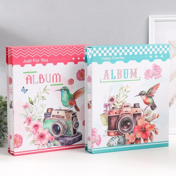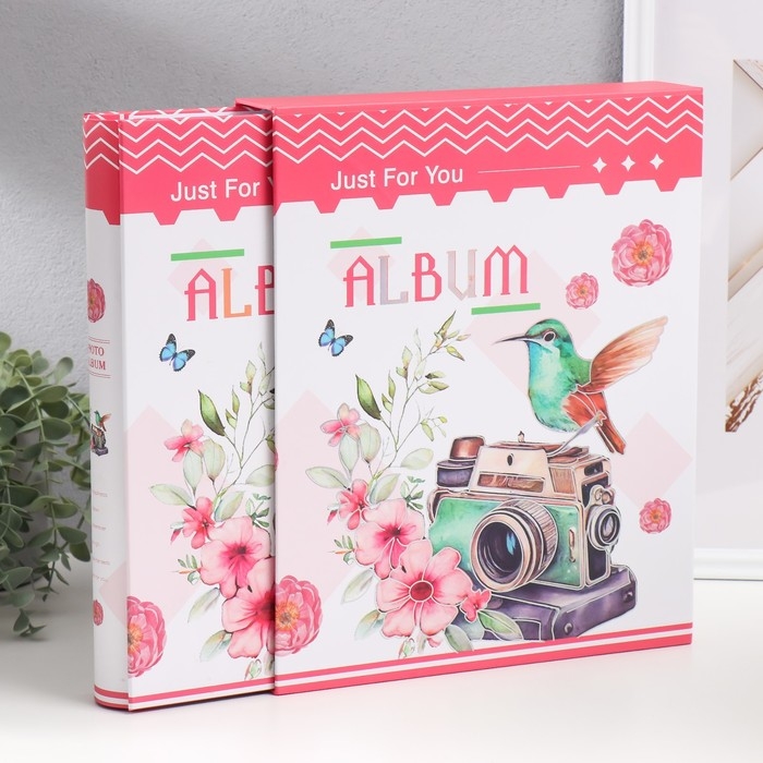Фотоальбом на 400 фото 10х15 см "Колибри на фотоаппарате" в коробке МИКС 33,5х27,5х5,5 см