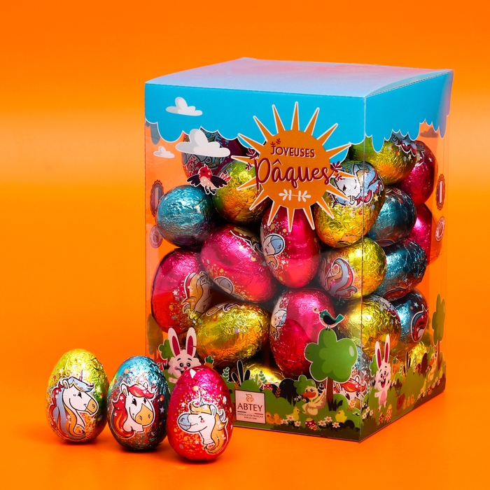 Каждое яйцо находится в индивидуальной оригинальной упаковке. Такое интересное ассорти можно подарить на любой праздник, а также использовать в качестве оформления сладкого стола. Вкусный шоколад гарантированно поднимет настроение и принесет массу положительных эмоций!