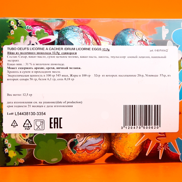 Набор шоколад молочный ЯЙЦО "Единорога" 12,5 г