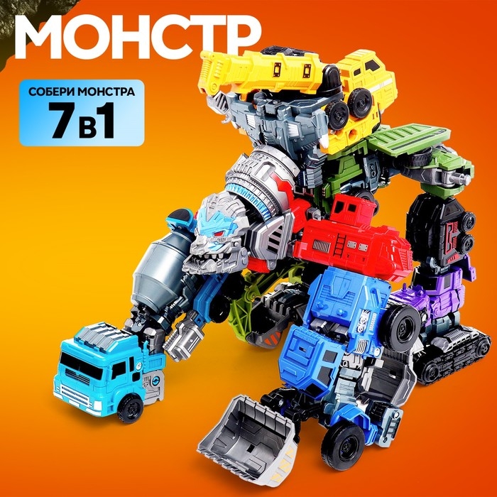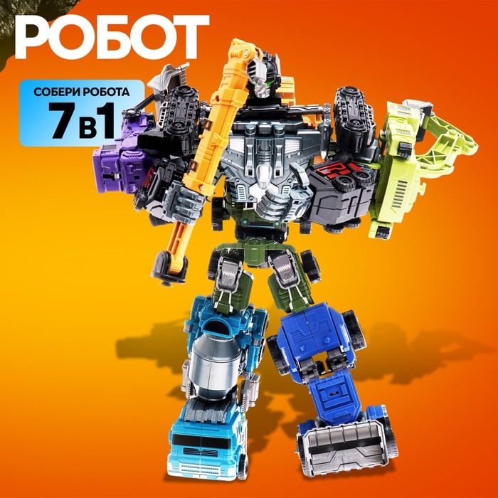 - 7 в 1: 7 роботов-машинок собираются в одного большого робота.