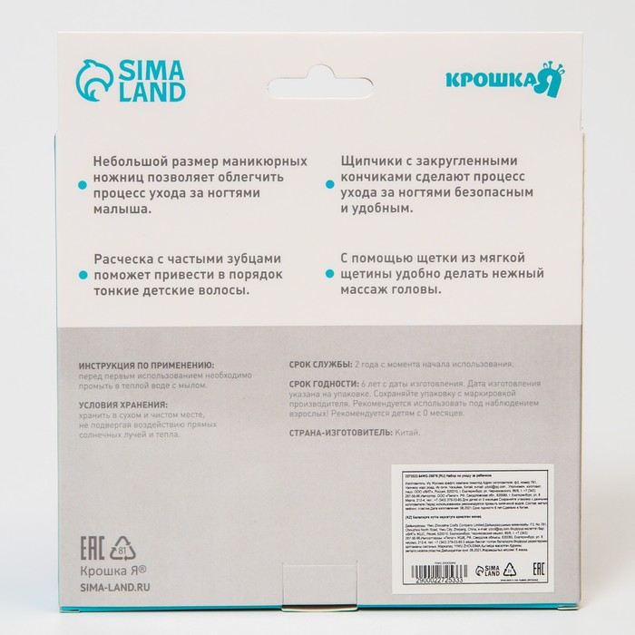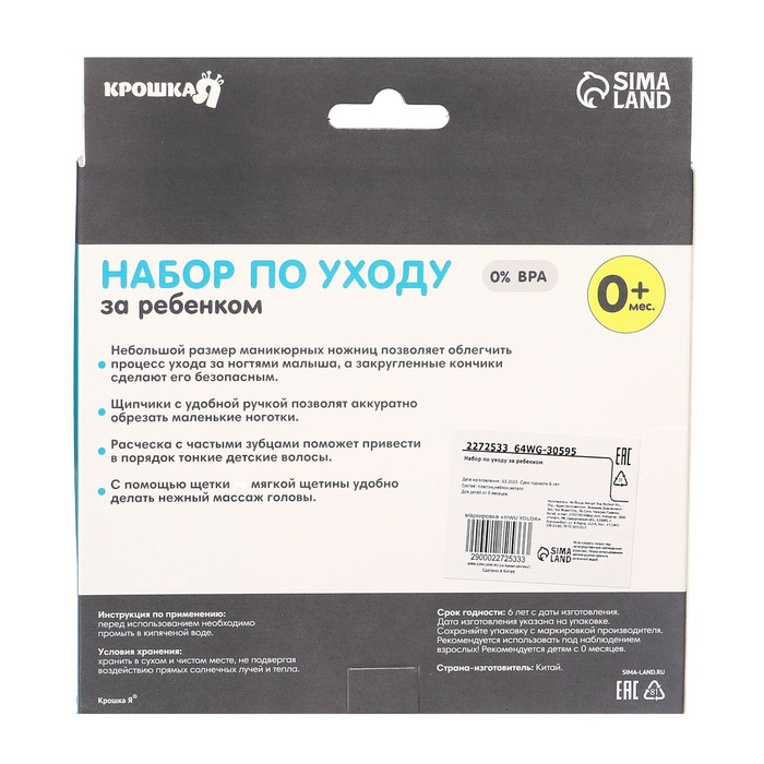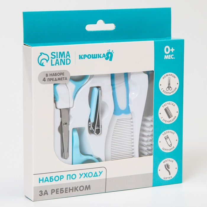 Набор по уходу за ребёнком, 6 предметов: детская расчёска, щётка, книпсер с чехлом, безопасные ножницы с колпачком, для мальчика
