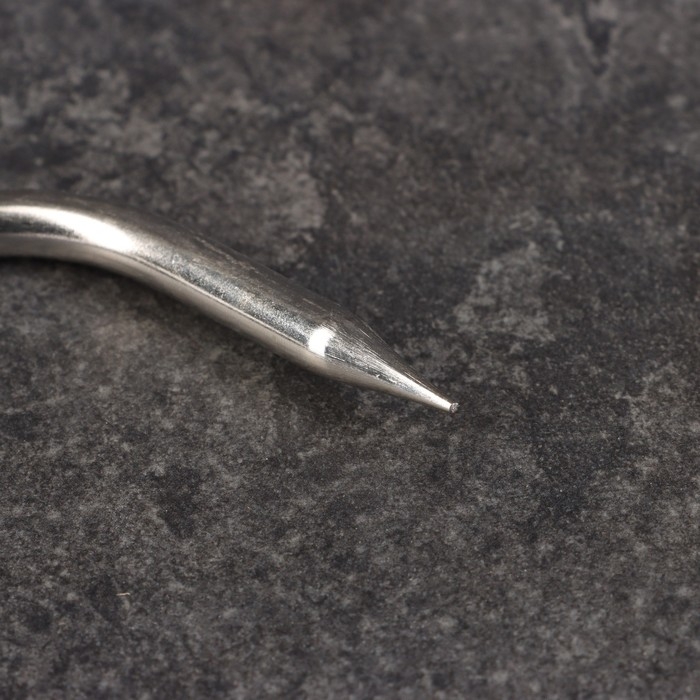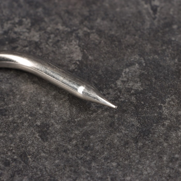 Острие позволяет легко нанизывать большие куски мяса или целые тушки птиц, а также другие продукты для последующего запекания,копчения или жарки. Специальная форма крюка предотвращает прокручивание или сползание продуктов, обеспечивая равномерное приготовление и сохранение формы.
