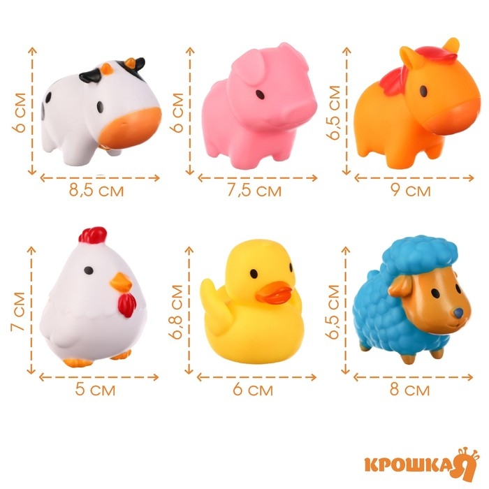 Набор резиновых игрушек для ванны «Моя ферма», 6 шт, брызгалки, от 3 мес., Крошка Я