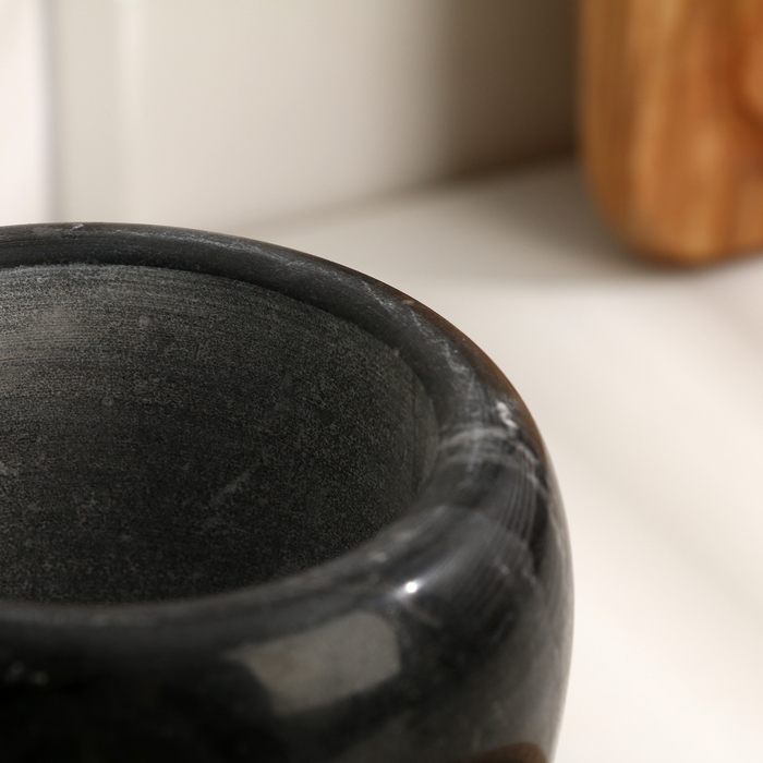 Ступка с пестиком из камня средняя, 250 мл, черный мрамор, в коробке