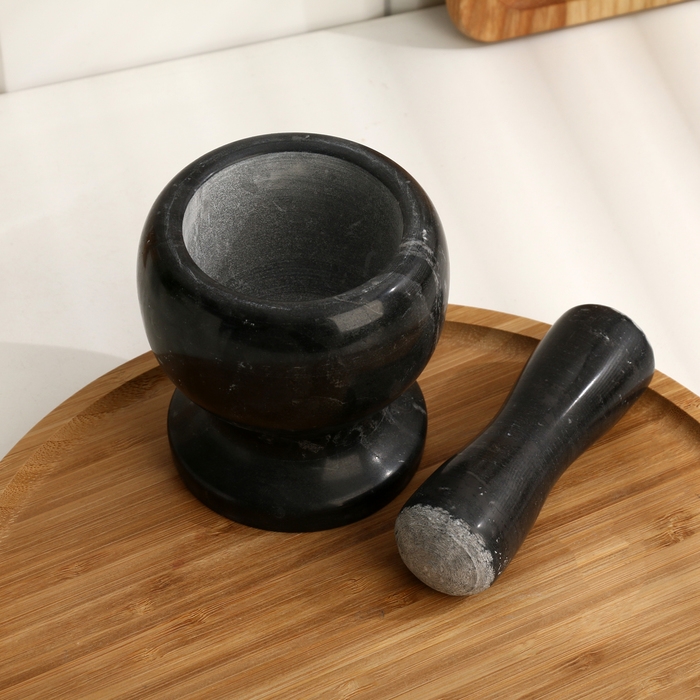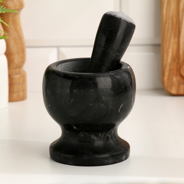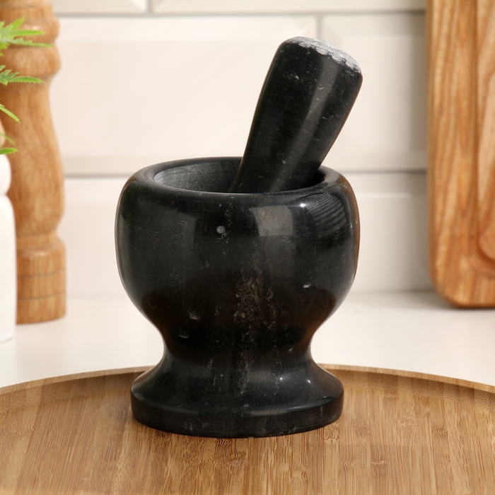 Ступка с пестиком Доляна «Чёрный мрамор», d=10 см, цвет чёрный