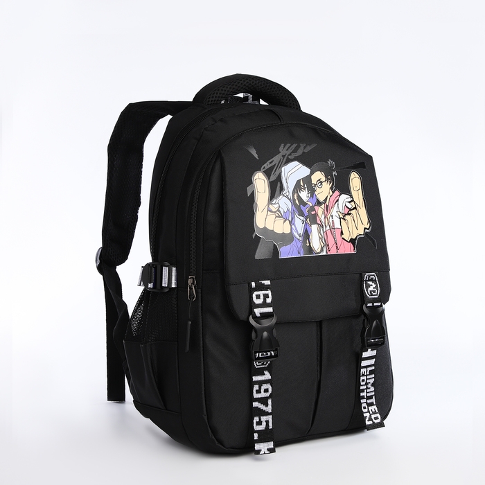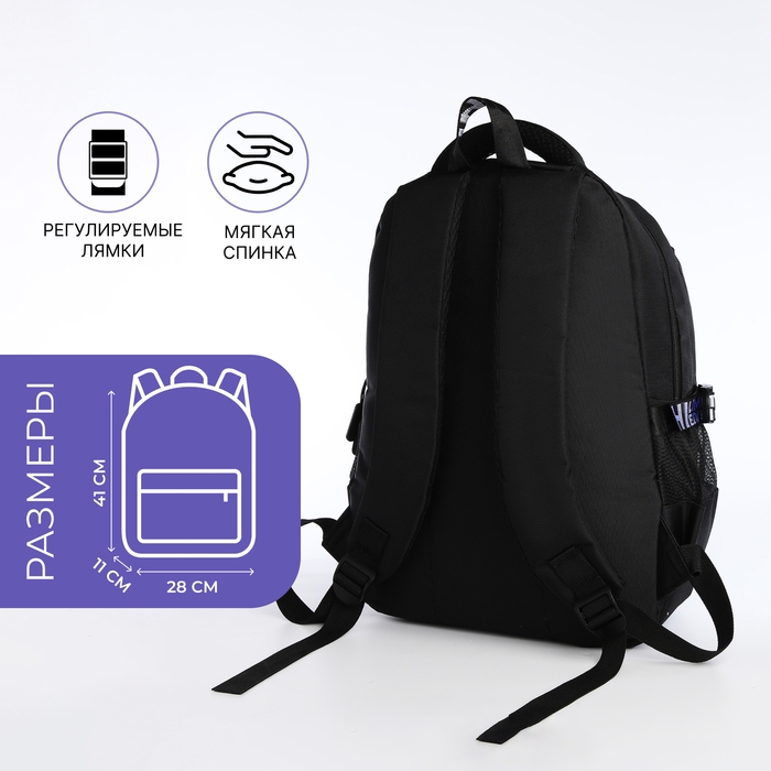 Рюкзак школьный на молнии, 5 карманов, цвет чёрный