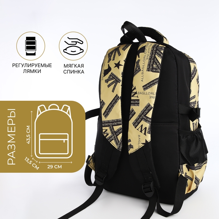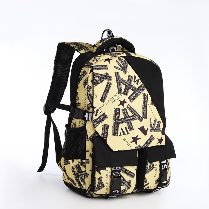 Рюкзак школьный на молнии, 5 карманов, цвет чёрный/жёлтый