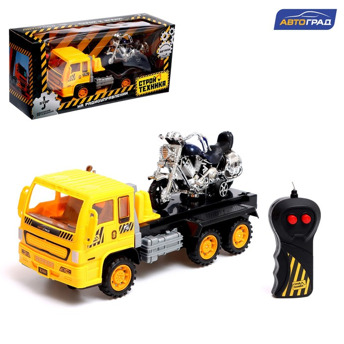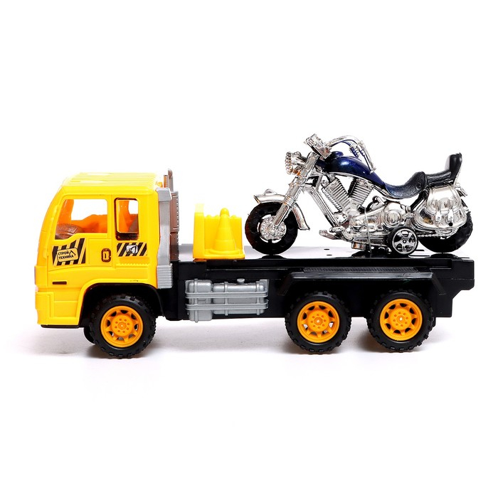 Грузовик радиоуправляемый «Эвакуатор», с мотоциклом, работает от батареек, МИКС
