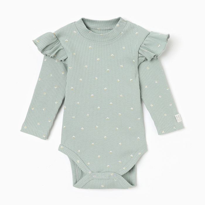 Боди с дл. рукавом и воланами Крошка Я Olives, р. 74-80, оливковый