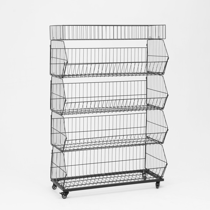 Накопитель разборный на колесах, 5 корзин с разделителями, 90×42×135 см, цвет чёрный